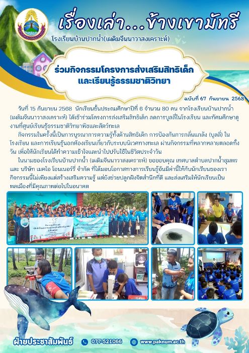 จดหมายข่าว กิจกรรมโครงการส่งเสริมสิทธิเด็กและเรียนรู้ธรรมชาติวิทยา