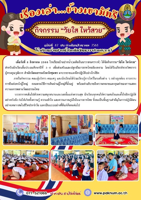 จดหมายข่าว กิจกรรมวัยใส ไหว้สวย